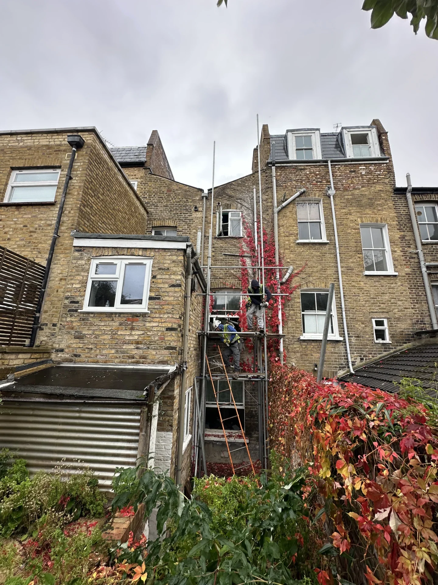 The property is being converted from two self-contained flats into a single dwelling. The project includes a new rooftop level, a two-storey rear extension, and a full internal reconfiguration with sustainable heating and cooling provided by an Air Source Heat Pump (ASHP).