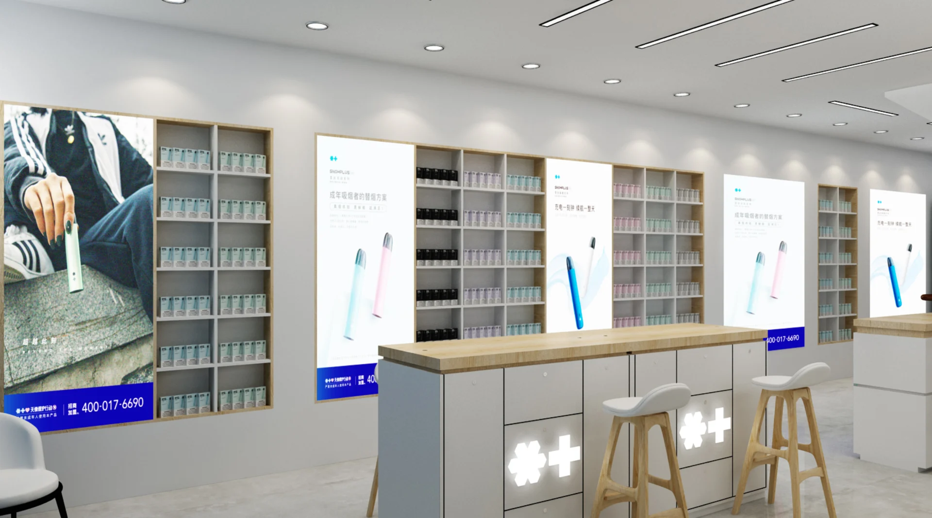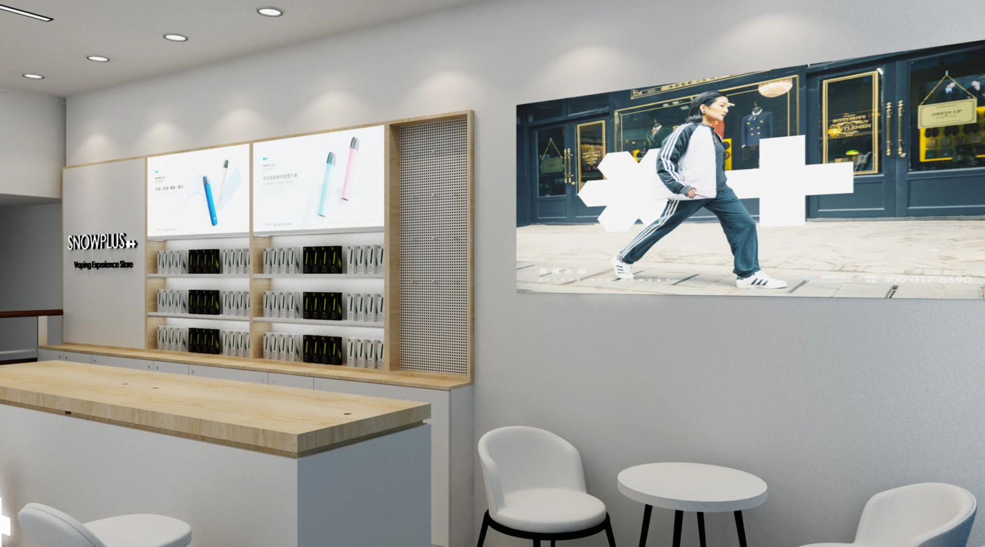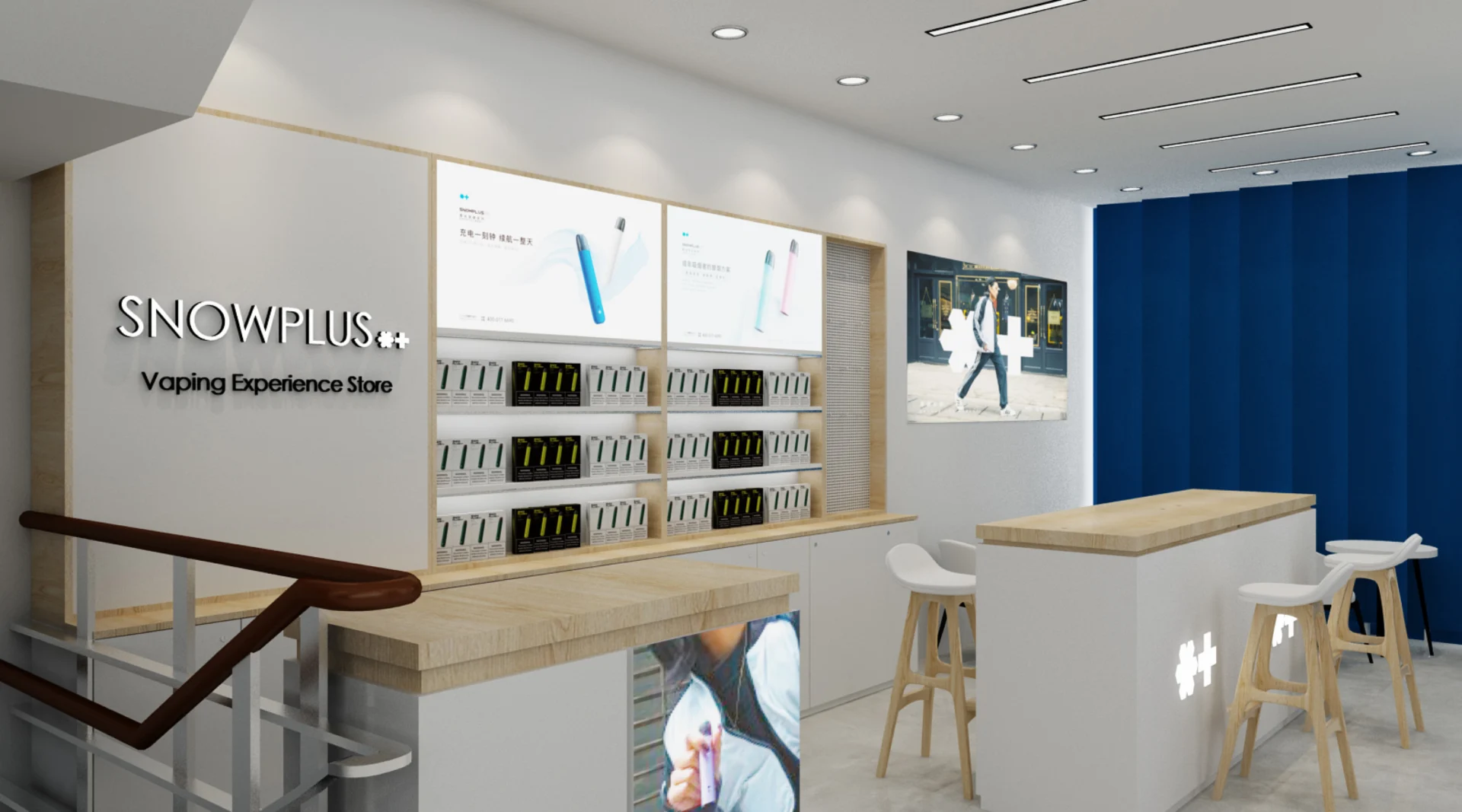 Our brief was to create a new flagship store for SnowPlus where customers can explore and immerse themselves with the latest technology in tobacco replacement solutions.